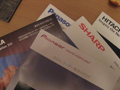 まぁ、私は録画できて再生できさえすれば何でも良いので、すべてだんなさん任せにした。価格.comによればアキバで一番安く買えるとのことだったが、コジマでも充分安く買えることが判明。でも、手を出せる価格帯・品質のものが多数あることが分かって、だんなさんは頭を抱えていた。と思ったら「今日は買うなってことだな」と言い、パンフレットをいっぱい集めて家に帰ることに。なんだっていいじゃーん。